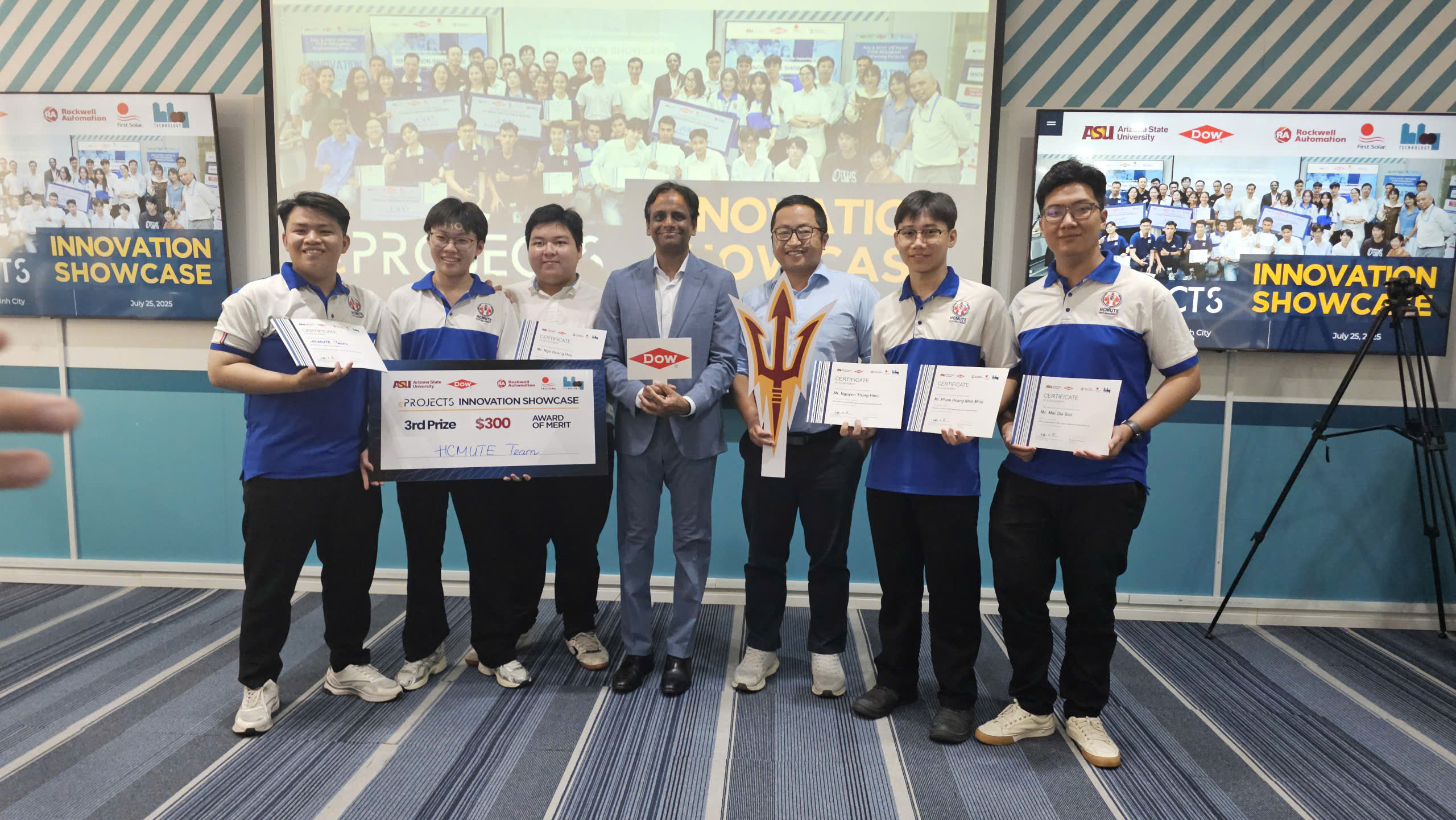 Đội sinh viên Automotive Mechatronics Lab (AML), Trường Đại học Sư phạm Kỹ thuật TP.HCM, đã xuất sắc giành Giải Ba – Giải Triển vọng (Award of Merit) tại cuộc thi eProject với đề tài “Hệ thống quản lý tích hợp đội xe và hàng hóa hóa chất”. Dự án nhận được sự tài trợ từ Công ty DOW, một trong những tập đoàn hóa chất hàng đầu thế giới, góp phần tạo điều kiện để nhóm sinh viên hoàn thiện ý tưởng và phát triển giải pháp thực tiễn.